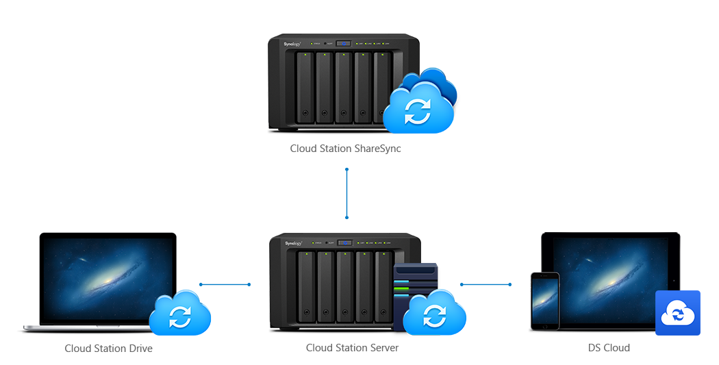 藉由豐富的云端解決方案,DS1515 讓你輕松建立個人云端。Cloud Station 是高效的套件,讓你在不同裝置間同步檔案,同時具有更高的安全性。你可以離線編輯檔案,完成后再同步至 Cloud Station。每個檔案皆可存放高達 32 個版本,使你能將檔案回復到過去的時間點。透過行動 app DS cloud,所有檔案更新都將自動同步到你的智能手機和平板電腦。針對分布式企業(yè),Synology 可讓兩臺 DiskStation 進行雙向同步,讓不同地點的員工仍可以實時分享相同的檔案。此外,IT 人員還可以手動挑選想要同步到不同裝置上的文件夾,或自動根據(jù)文件格式、大小等標準來篩選。Cloud Station 同步的文件夾可在服務器端由 DSM 加密,沒有你的密碼,別人無法存取其內容。