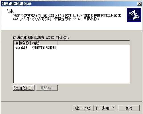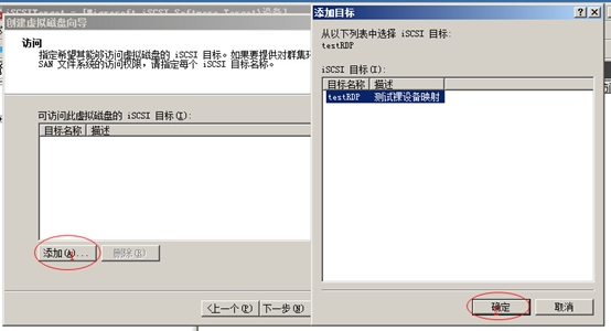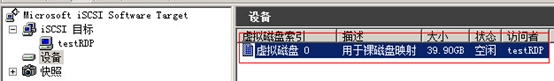 在iSCSI目標欄出現testRDP目標